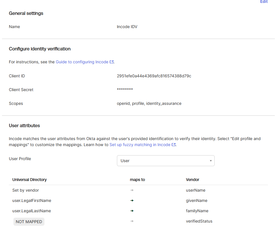 - Any updates to Okta user profiles will automatically sync to Incode on the next verification request.